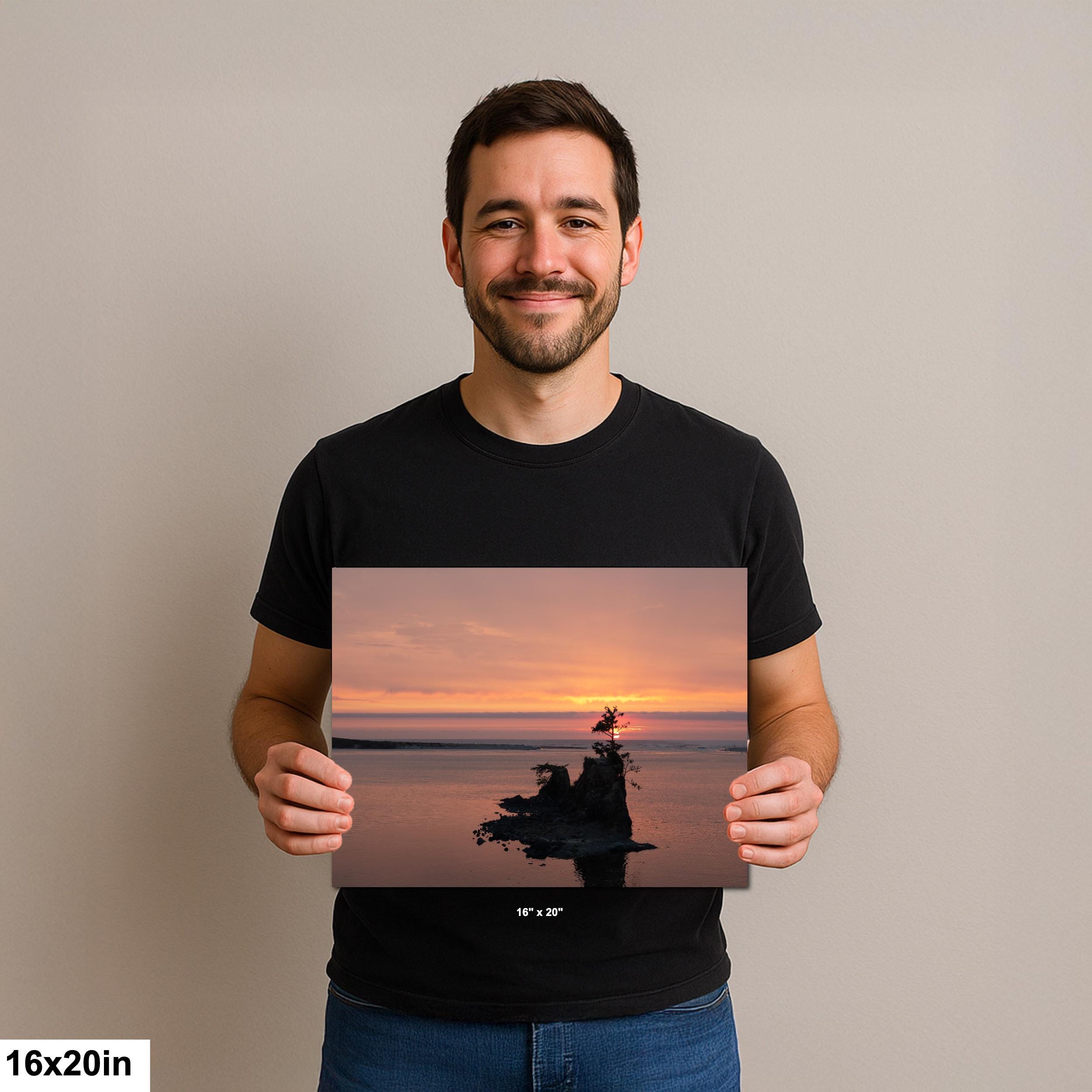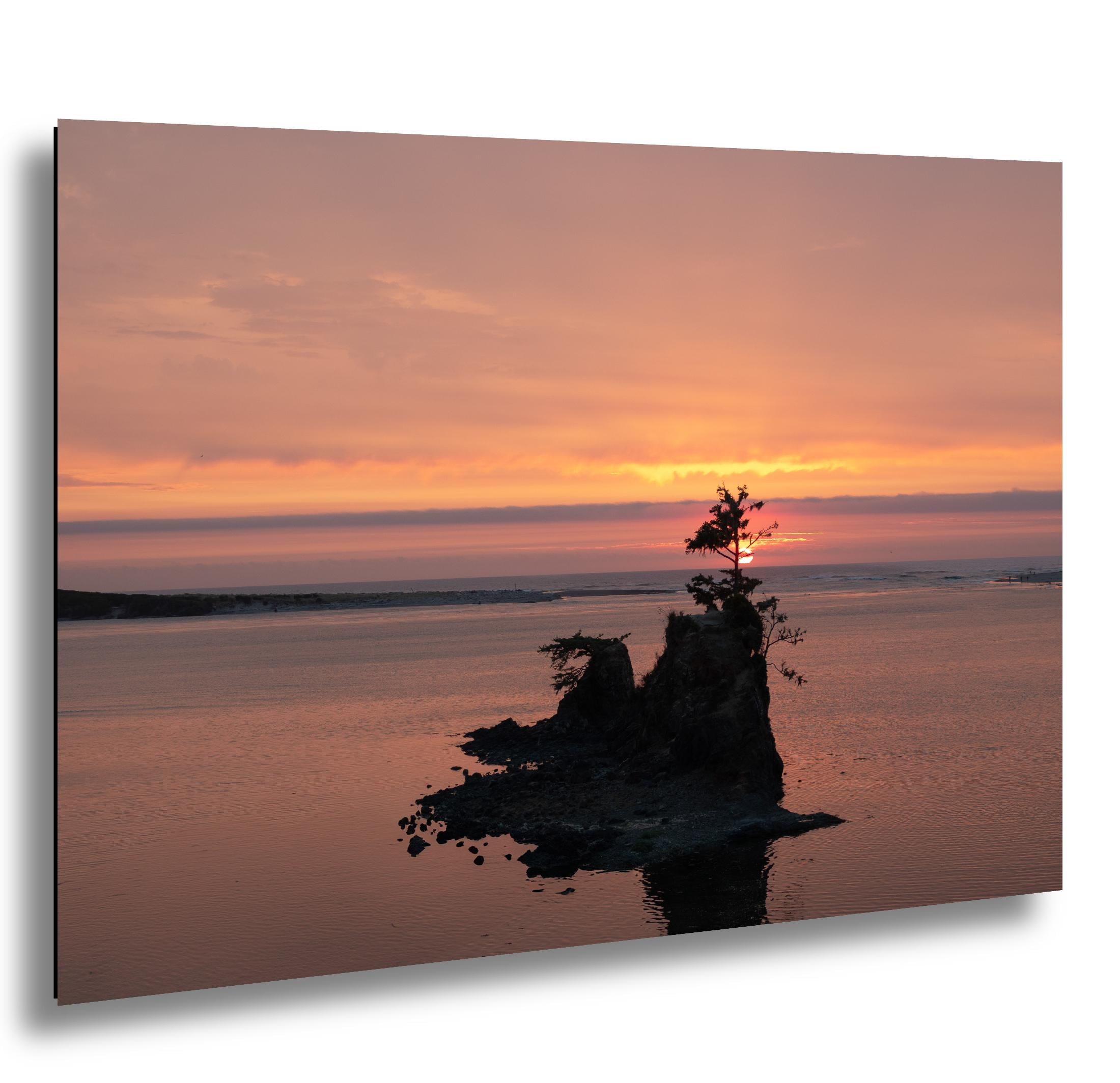 Driving down the Oregon coast as the sun was setting I looked out and saw this. beautiful view. I turned around with cars honking at me to get back before the sun did set. This is the result of my discovery. A beautiful sunset with the island and tree positioned perfectly for the shot. I could not have planned it better.